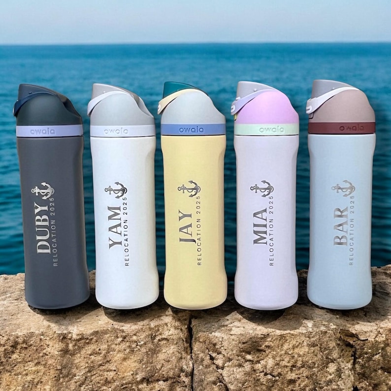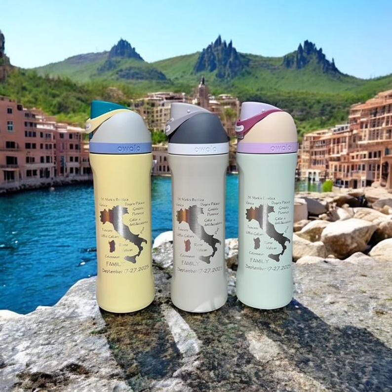 Engraved 24oz Owala Water FreeSip water bottle available in 18 colors! Thoughtful gift for back to school, family trip, camp, mom, teachers, coaches, teams or to add your corporate logo!